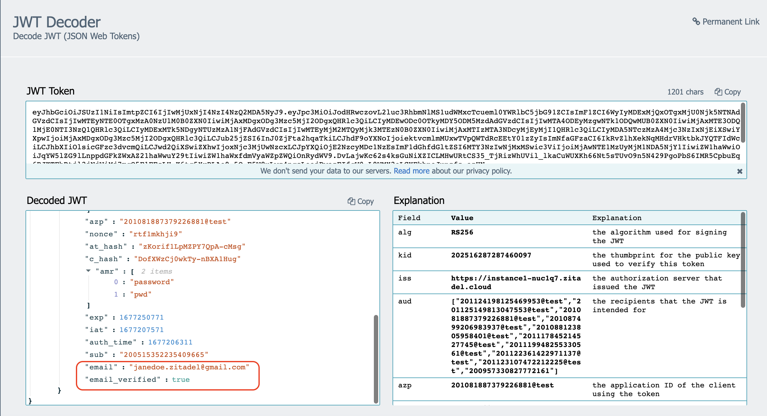 - In the decoded section, you will be able to see the user’s email address in addition to the other decoded details.