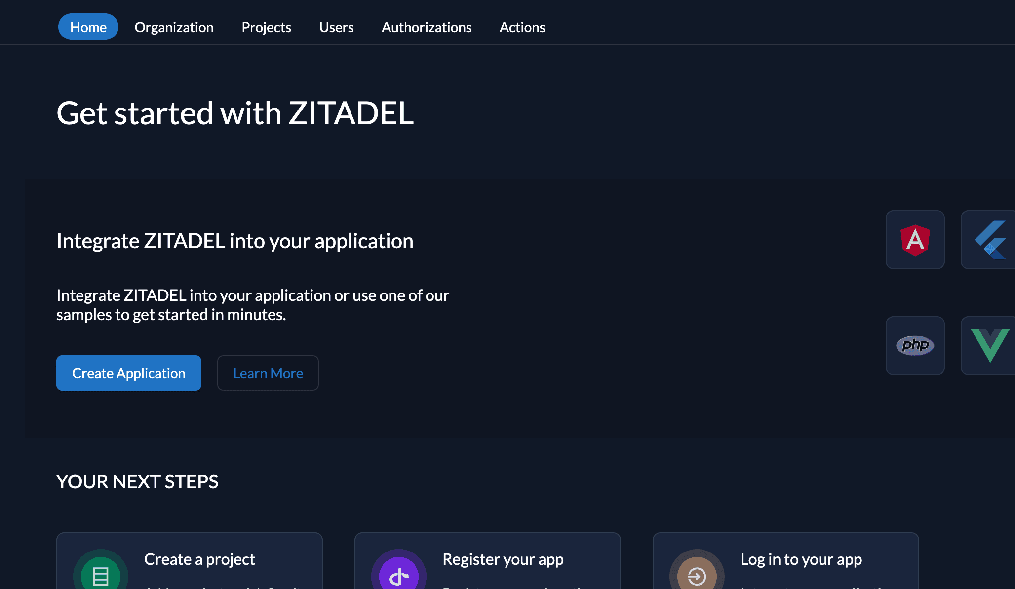 Before we begin developing our API, we need to perform a few configuration steps in the ZITADEL Console. You'll need to provide some information about your app. We recommend creating a new app to start from scratch.