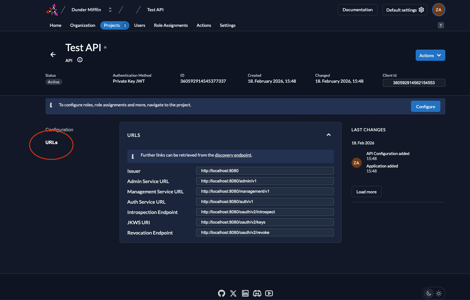 - When you click on URLs on the left, you will see the relevant OIDC URLs. Note down the issuer URL, token_endpoint and introspection_endpoint.