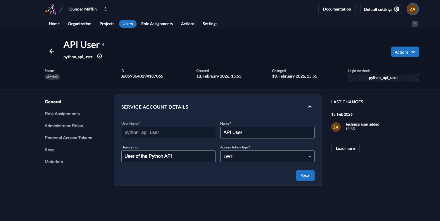 API_PRIVATE_KEY_FILE_PATH = 'Path to the key.json created in ZITADEL'I should look something like this: