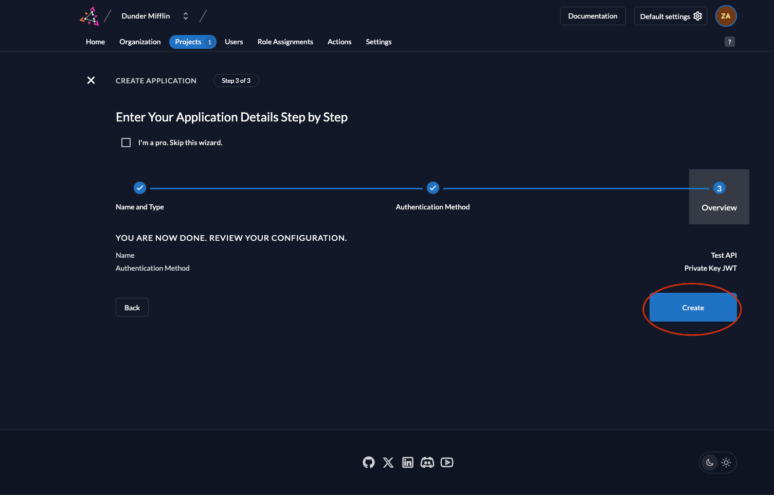 Create application