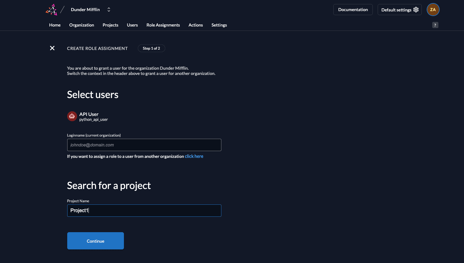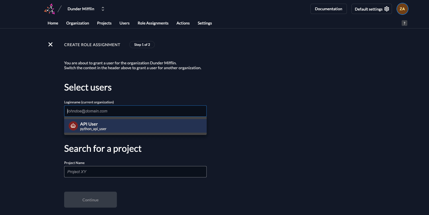 - Select the project where this role assignment is applicable.