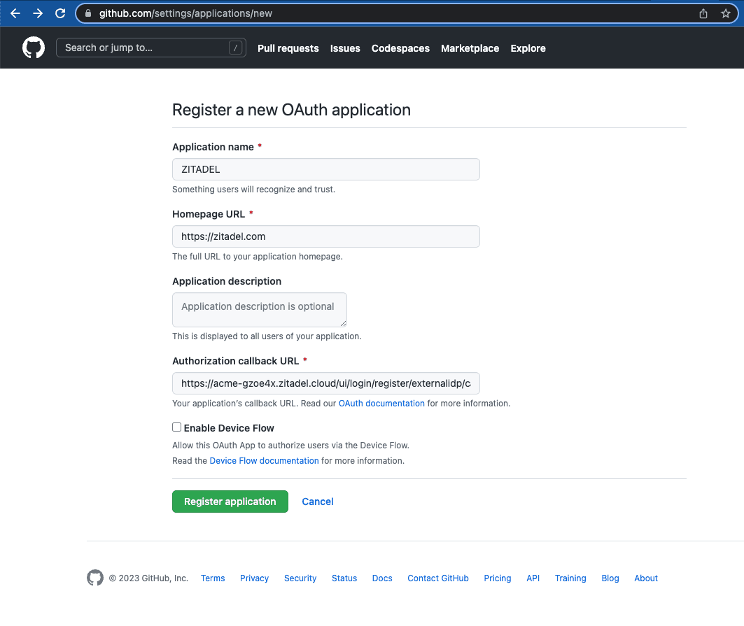 - For GitHub browse to the Register a new OAuth application. You can find this link withing Settings - Developer Settings - - OAuth Apps.